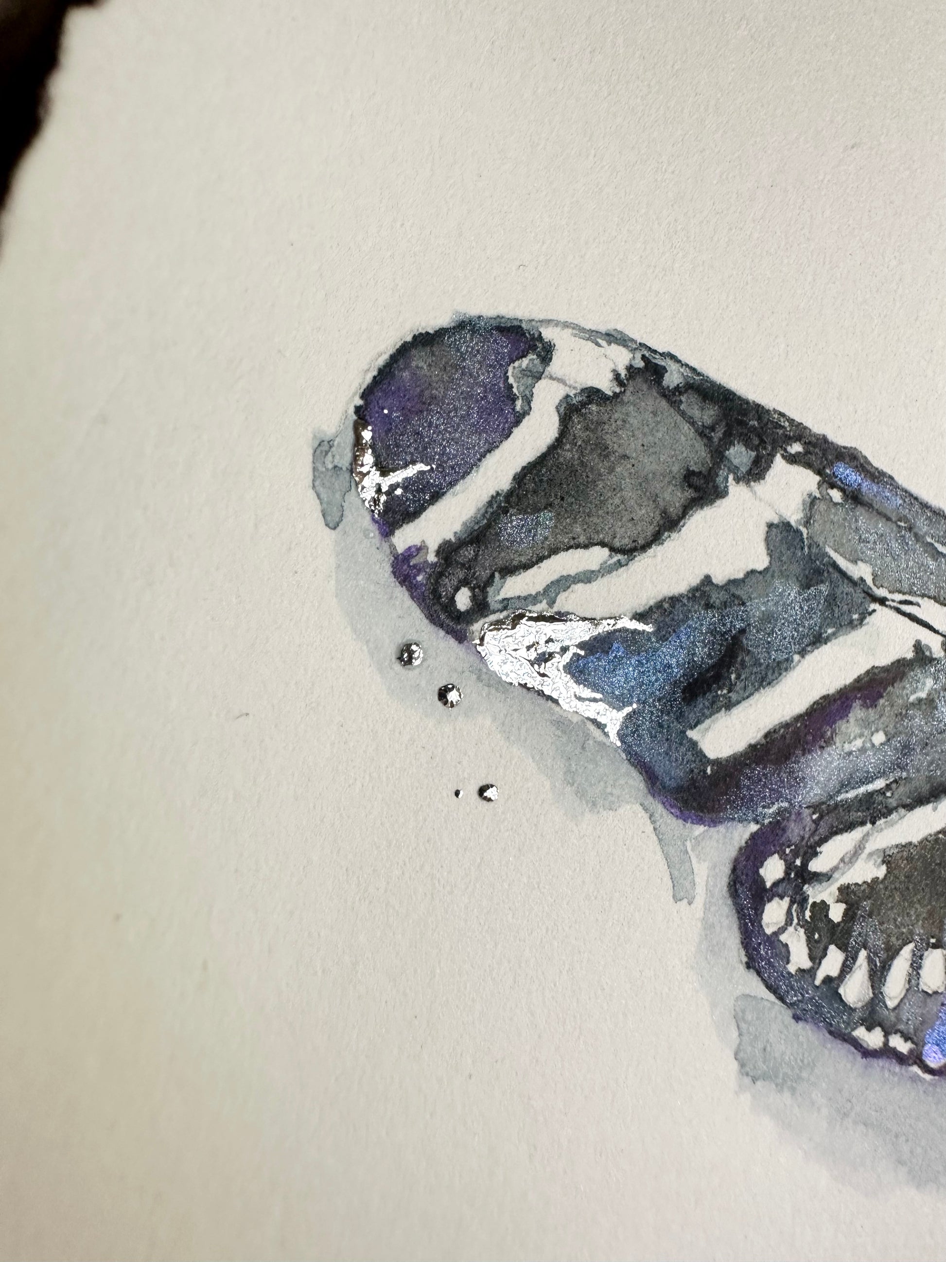 7“X7” - watercolor, India ink, Silver leaf on paper