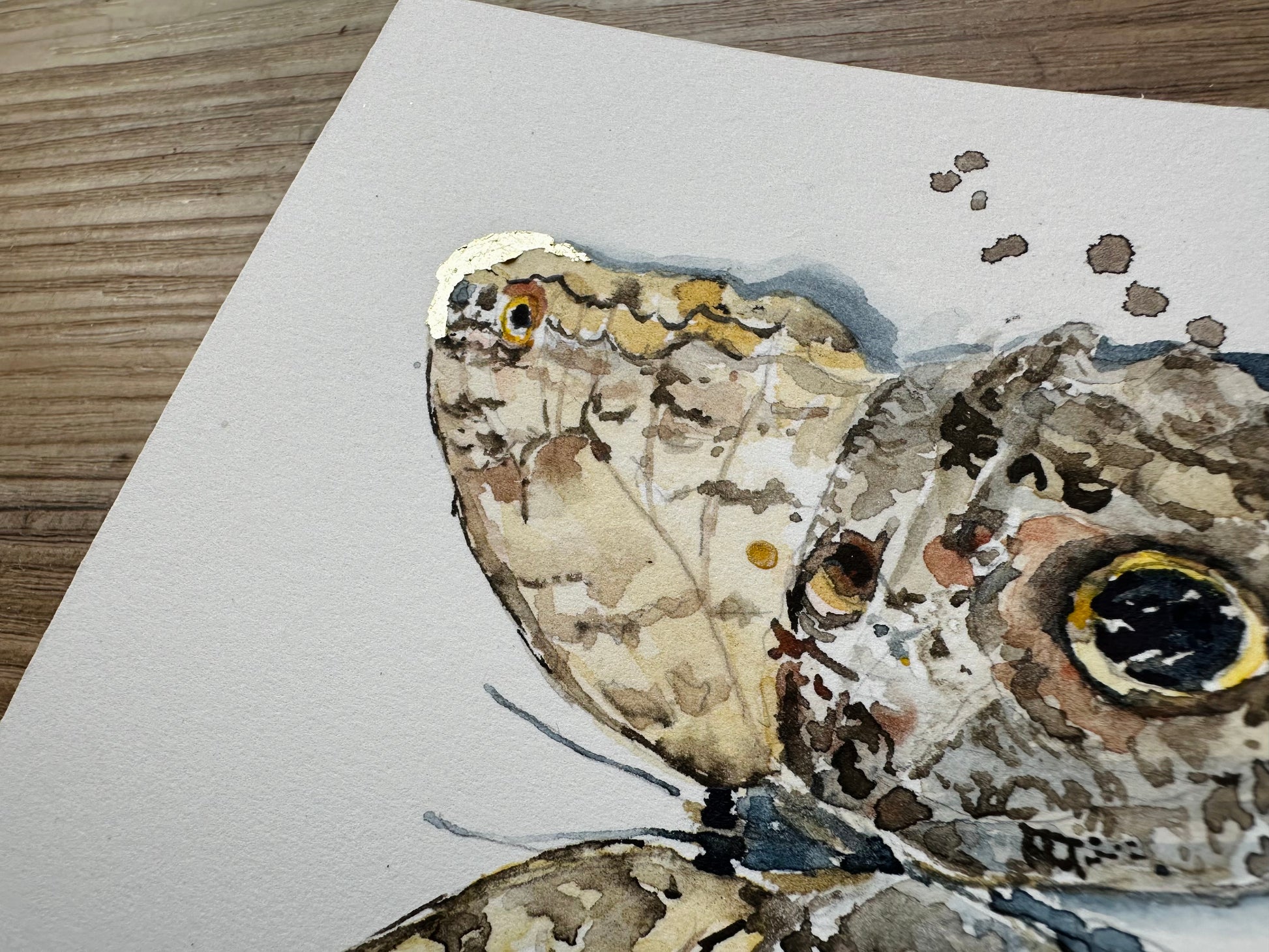7"×7" – watercolor, India ink, and silver leaf on paper
